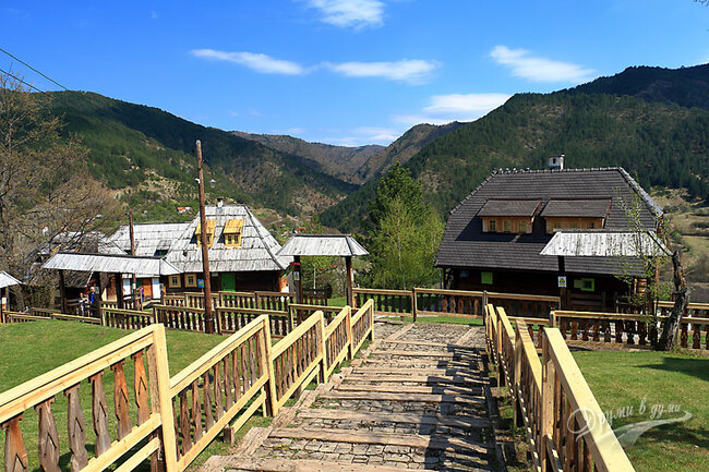 Дървеният град е комплекс от дървени къщички с автентичната архитектура на типичното сръбско село. Разположен е на хълм, наречен Мечавник, който е заобиколен от други хълмове. Мястото е много красиво и е част от национален парк Мокра гора.