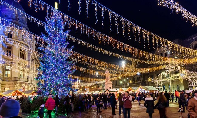 Коледните тържества в Румъния започват след Деня на Свети Андрей (30 ноември), когато румънците прогонват призраци и мародерства на вампири със скилидки чесън. На празничния пазар в Букурещ се открояват спускане с шейни и занаяти, включително маски, традиционни румънски костюми и музикални инструменти. Както и chec cu nucă - панетон, намазан с ром и обсипан със захаросани орехи.