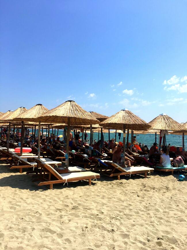 Ако трябва да сравним с нашето черноморие, тук цените са доста по-ниски. Чадър и шезлонг получавате безплатно ако си поръчате нещо за пиене, а в летните горещини така или иначе това е неизбежно. Има и голяма част, която е свободна зона, така че ако държите да сте малко по-отдалечени от останалите и искате да си вземете собствено чадърче, детски басейн и каквото друго решите, това е напълно възможно и удобно.