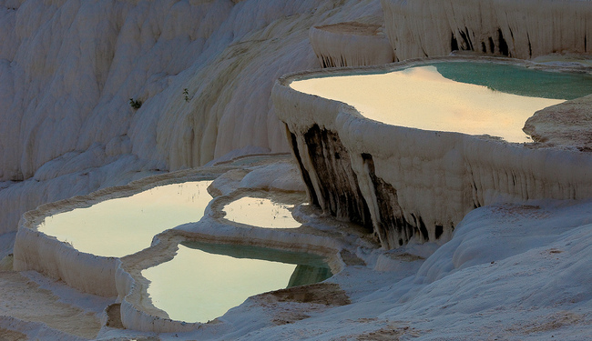 Топлината на водата обаче не е единственият привлекателен аспект на това място. Контрастът между блестящите басейни и травертин - вид бял варовик, отложен от термалните води, който обгражда околните планини, е наистина зашеметяващ. През деня или по залез - Памуккале е истинска приказка за сетивата.