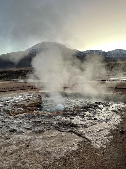 Екскурзоводът ни каза, че имаме около 80 километра до гейзерите, бяхме съвсем недалеко от границата с Боливия - надморска височина 4300 метра. Също така Ел Татио се нарежда на трето място по размер сред всички гейзери но планетата, преди него са Йелоустоун в САЩ и Долината на гейзерите в Камчатка. Аз не можех да си представя колко е голямо и как би изглеждало. Единствените гейзери, които бях виждал бяха само на снимка или списание. Ел Татио е долина с внушителна площ от цели 30 квадратни километра, изпълнена с басейни, кипящи фонтани, горещи извори и вулкани. Интересен факт е, че колкото по-висока е надморската височина толкова по-вероятно е водата да стигне до кипене дори при по-ниска температура. Гидът ни информира, че температурата на водата достига 85-90 градуса и регистрираните термални източници са над 100, от които 80 са пълноценни гейзери. Имаше доста групи въпреки ранния час. Трябваше да се движим по график за да не правим задръстване. Територията е охраняема зона, но е отворена за туристи. Гидът ни разказа за смъртни случаи породени от невнимание, така че следвайте инструкциите на екскурзовода.