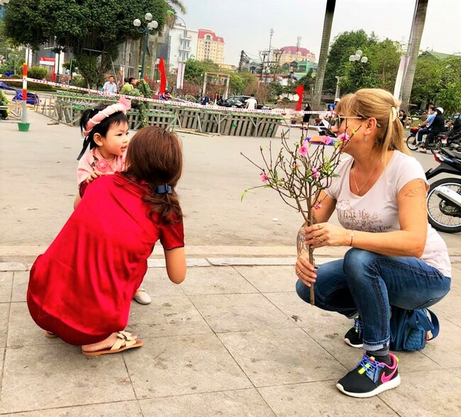 Навсякъде се вижда трескаво приготовление за празника – символите са почти като у нас – вместо елхи – цъфнали праскови, отглеждан специално за случая сорт – в розово, бяло и жълто. Клонки или цели малки дръвчета, обсипани с плодове мини, мандаринови дръвчета или дръвчета помело. Навсякъде хвърчат моторчета с тези дръвчета, обикновено прегърнати от седящата отзад жена. Тези с колите ги привързват някакси на тавана на автомобила. Дръвчета и цъфнали клонки – във всяка ръка, във всяка кола, на всеки мотор, витрина, ъгъл, на всяка крачка. Пъстра и шумна емоция е пазарът за цветя в този предновогодишен ден.